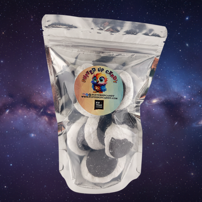 A cosmic twist on a classic cookie! These freeze dried Oreos expand into light, crunchy cookie clouds, while the Jet Puffed marshmallow center turns into a sweet, fluffy burst of melt in your-mouth goodness.