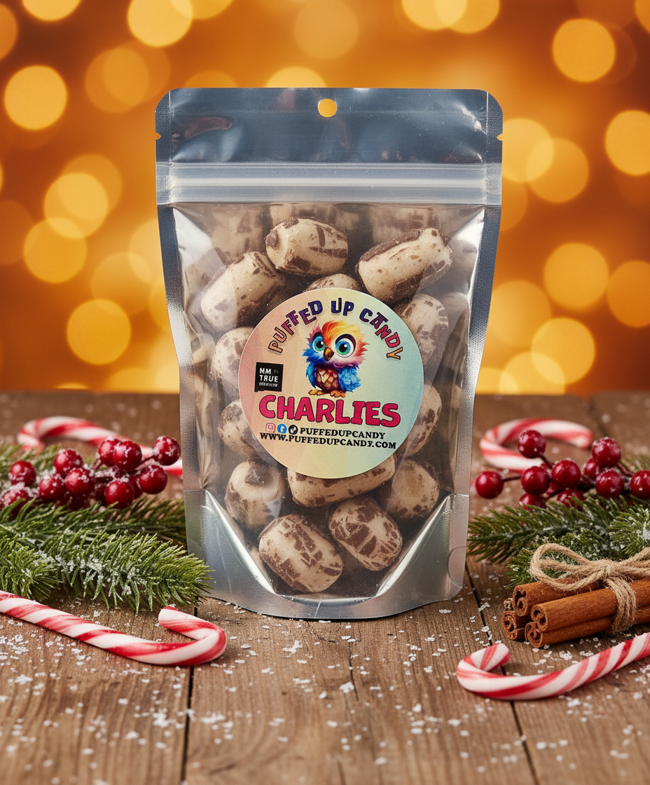 Charleston Chew, A classic candy transformed into a light, crunchy delight! Freeze drying turns the chewy nougat center into an airy, crisp bite while keeping the rich chocolate coating perfectly intact.