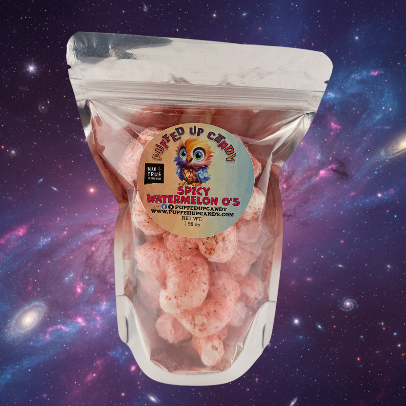 Freeze-dried Chamoy Tajin Watermelon Gummy Rings are a bold and flavorful twist on traditional gummy candy. The gummy rings, which feature a watermelon flavor, are coated with Chamoy (a tangy and spicy condiment) and Tajín (a popular chili-lime seasoning). The freeze-drying process removes the moisture, transforming the chewy gummies into light, crisp, and airy treats.